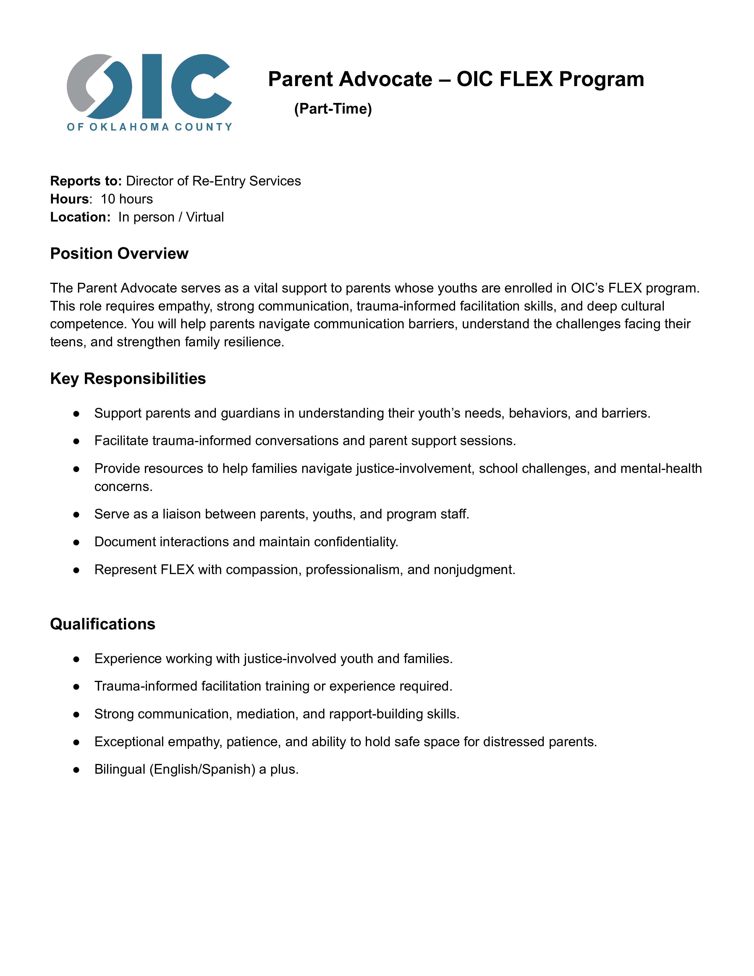 Parent Advocate - OIC FLEX Program